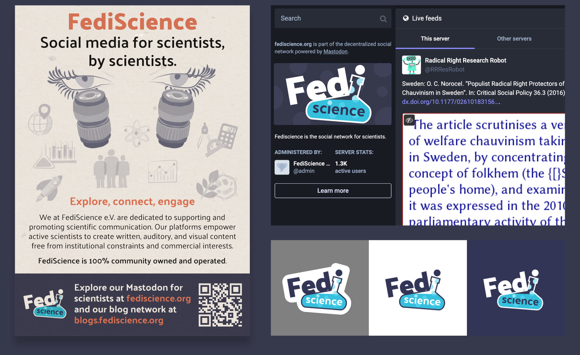 FediScience is a network run by and for scientists. We worked on a logo for them and created a print flyer.