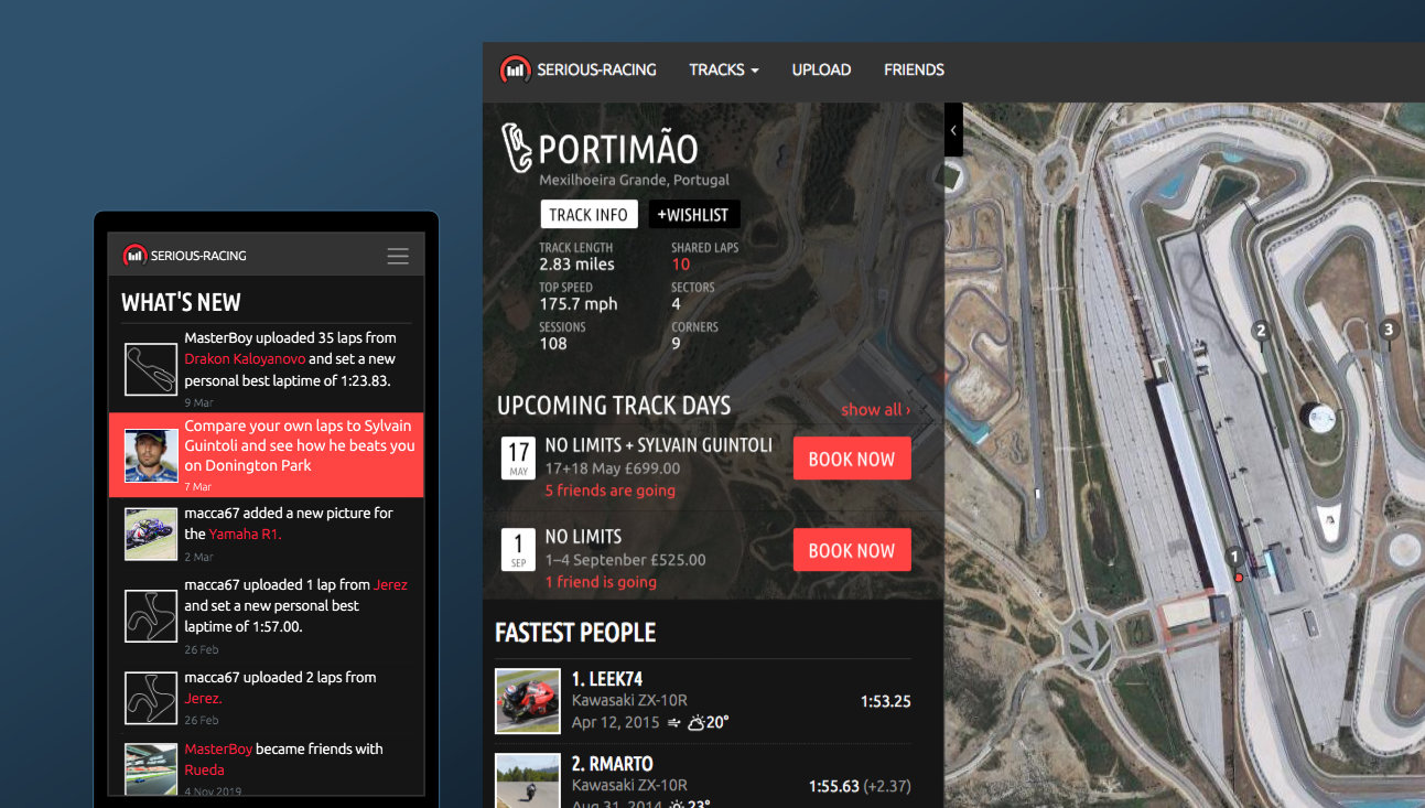 Serious-Racing is a free community app for anyone who's into cars, bikes, or karts. Users can add their vehicles, explore hundreds of tracks all over the world, and upload their GPS trackday data to compare their performance with others.