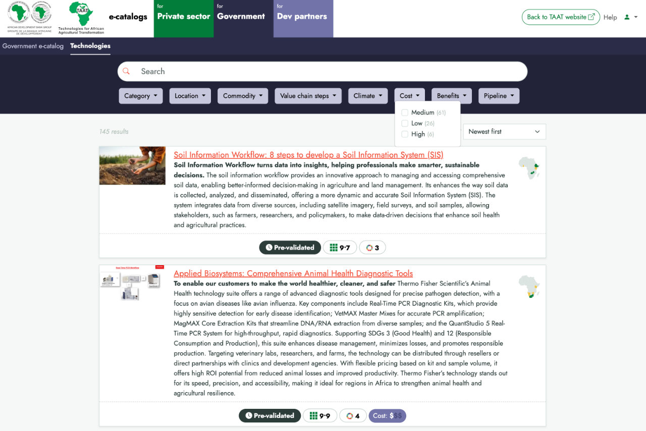 The TAAT e-catalogs are an online resource that lists vetted and validated agri-tech solutions for the African continent.